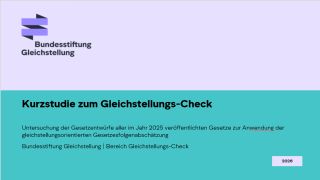 Für den Gleichstellungs-Check von Gesetzen liegt eine Arbeitshilfe des BMBFSFJ vor, mit deren Unterstützung der Gleichstellungs-Check in vier Prüfschritten durchgeführt werden kann.