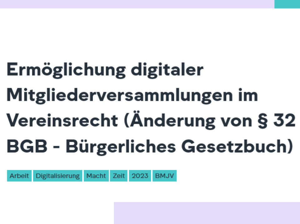 Ziel des Gesetzentwurfs ist es, digitale Mitgliederversammlungen zu ermöglichen, die Mitgliedschaftsrechte zu stärken und das ehrenamtliche Engagement zu fördern.